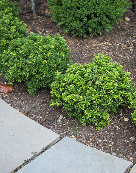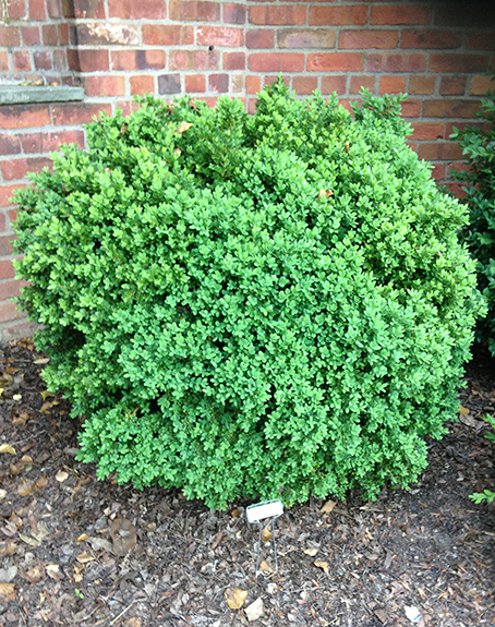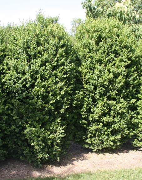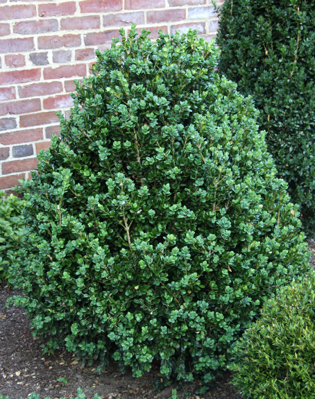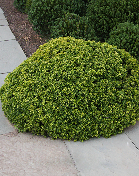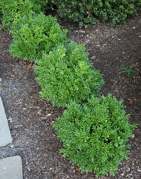 | Our favorite boxwood. Stays a nice dark green all winter. Great mounding habit – does not get over 24”. Good for low borders. Good substitute for English dwarf borders. Young plants may have brown tips in late winter. Not to worry, prune off. Tiny leaves, low cloud-like effect, great for low hedges & as substitute for English. Dense, needs pruning. Not good in containers.